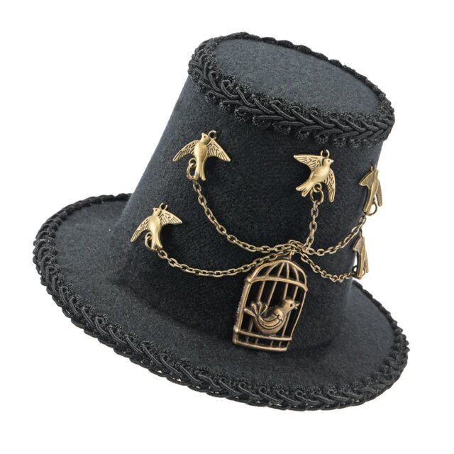 Steampunk Black Retro Mini Top Hat Lolita Birds