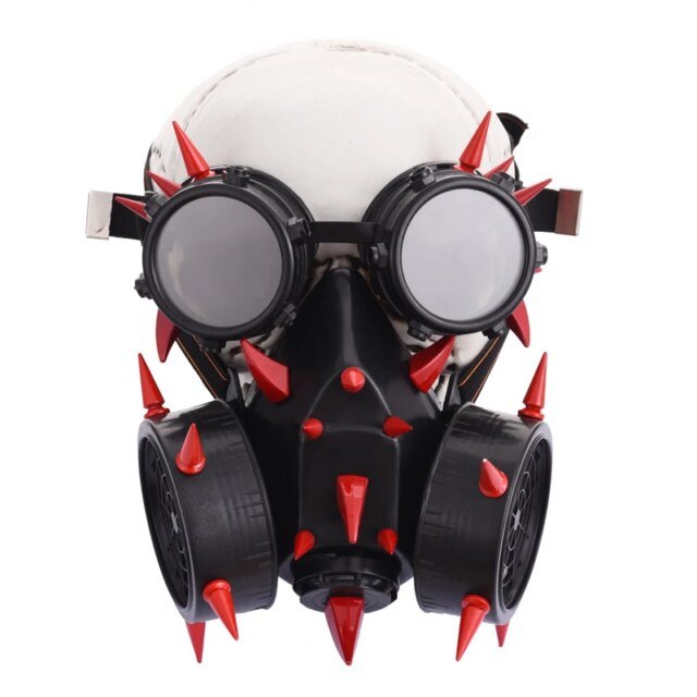 SteamPunk Burning Man Spikes Gas Mask Red Rivets