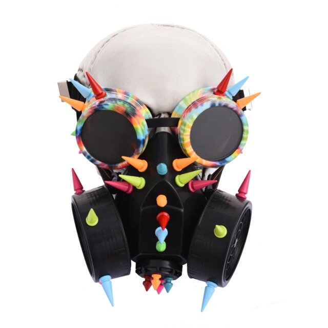 Retro Men Women Colorful Rivets Goggles Gas Mask for Cosplay Gothic Rock Spikes Glasses Respirator Masks Costumes Accessory