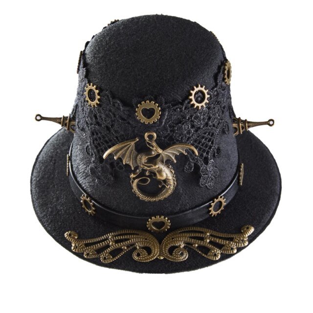 Punk Gears Mini Hat Gothic Dragon Lace Steampunk Little Top Hat Hairpin Party Halloween Christmas Porforming Prop
