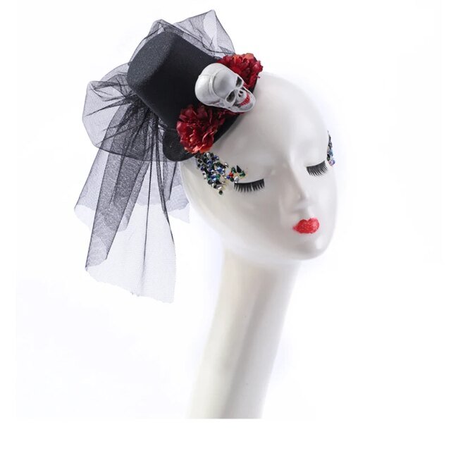 Hats Steam Punk Mini Top Hat Women Fedora With Skull Hair Clip Lolita Vintage Hat Flowers Hair Accessories For Women Halloween