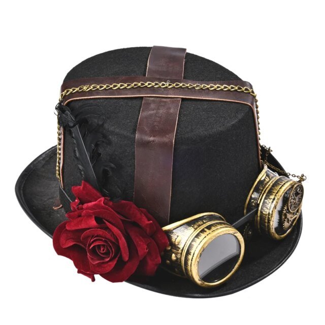 Steampunk DIY Fedora Hat Punk Leather Belt Chains Rose Top Hat With Glasses Women Gothic Gear Fedoras Hat For Men Millinery
