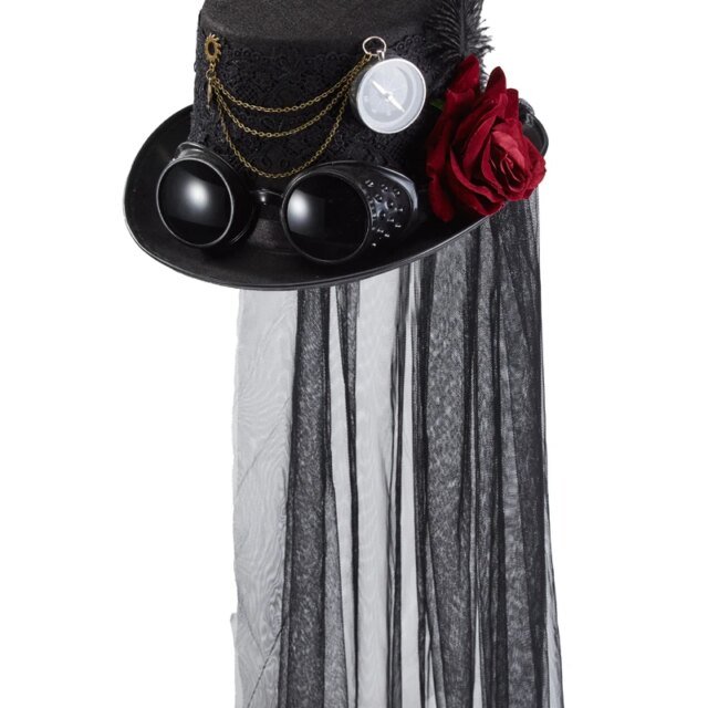 Men Women Cosplay Hat Steampunk Top Hats Magic Hat Punk Gear Chains Rose fedora With Veil