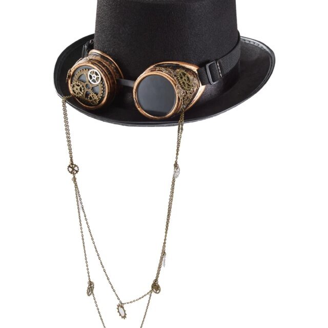Steampunk Hat With Goggles Gothic Gears Chain Black Top Hat Men Women Black Fedora Cosplay Anime Head Wear
